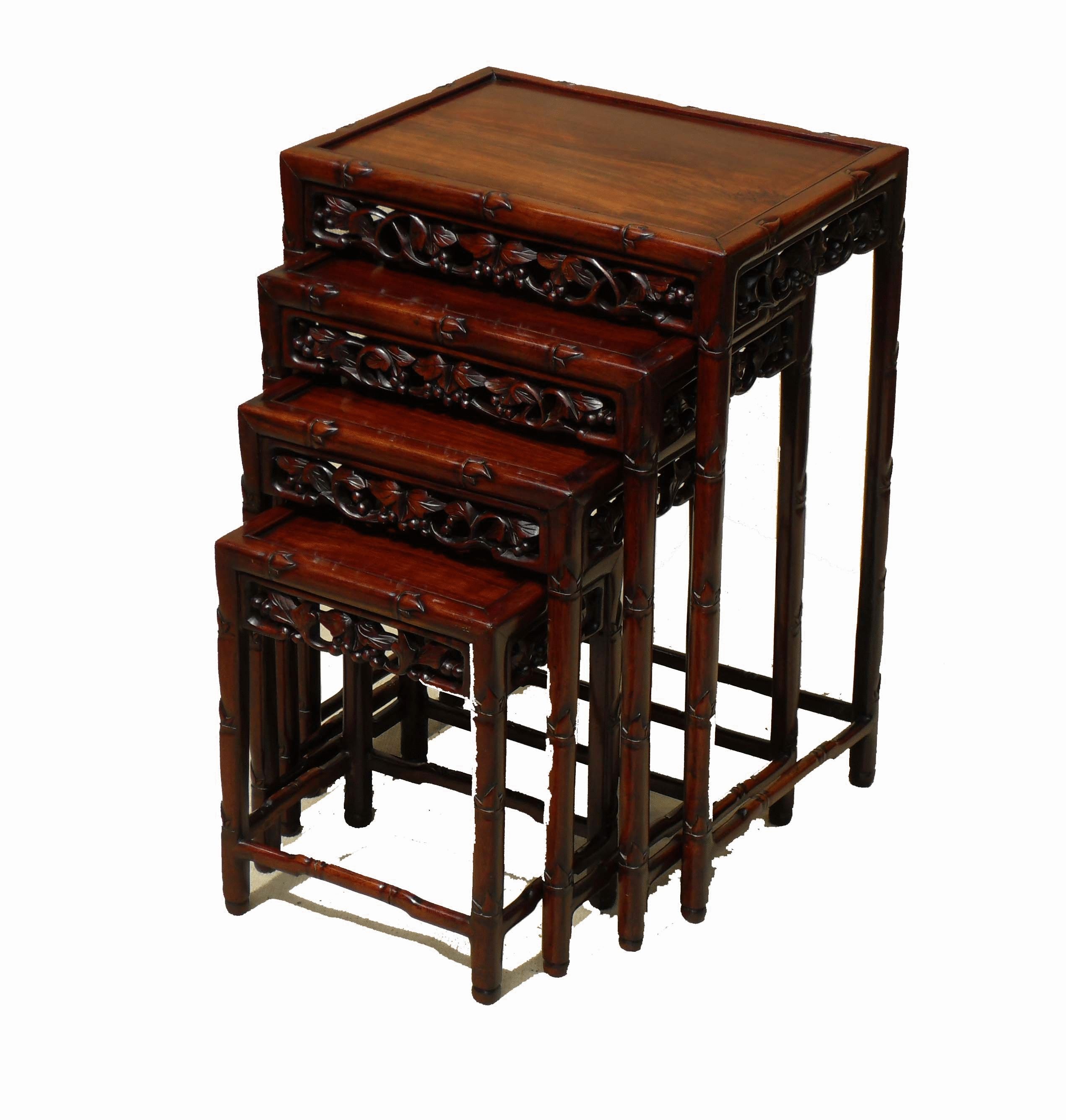 Oriental Hardwood Coffee Tables Having Elaborately Carved Frieze And Bamboo Effect