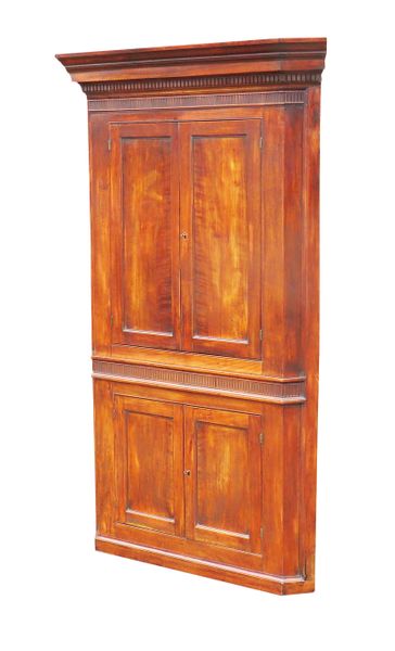 18th Century English Fruitwood Barrel Back Double Corner Cupboard