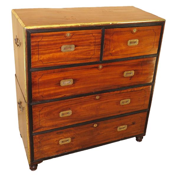 Military Camphor Wood 19th Century Campaign Chest Of Drawers