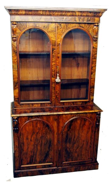 Victorian English Burr Walnut Library Bookcase Antique