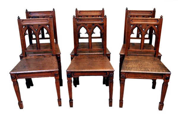 Antique Oak Set Of Six Gothic Chairs