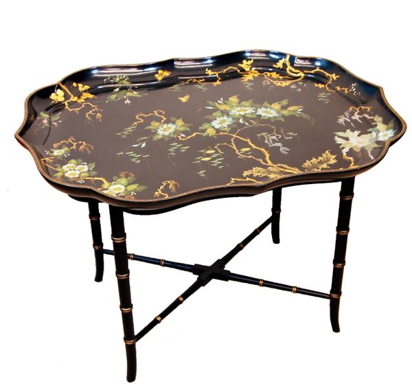 Antique Regency Papier Mache Tray On Stand