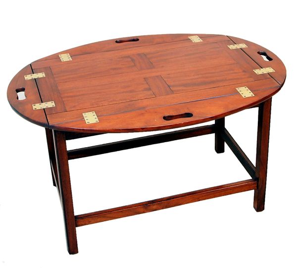 Antique Georgian Mahogany Oval Butlers Tray On Stand