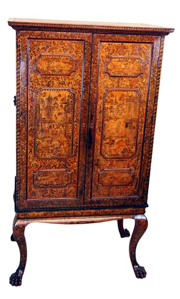 Antique Early 19th Century Chinese Export Lacquer Cabinet On Stand
