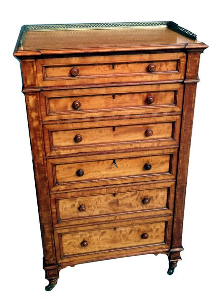 Antique Satin Birch Wellington Type Pedestal Chest