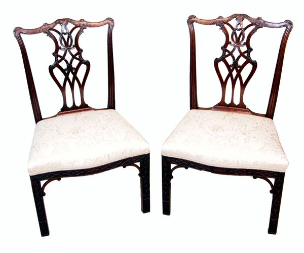 Antique Mahogany Pair Of Chippendale Side Chairs