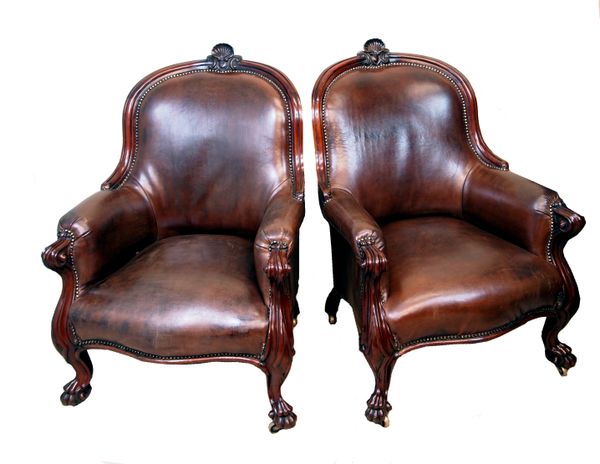 Antique Pair Of 19th Century Mahogany Library Chairs