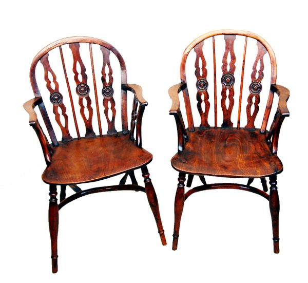 Antique Pair Of Yewood Draught Back Windsor Chairs