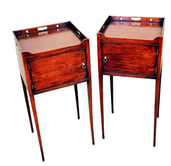 Antique Matched Pair Of Georgian Mahogany Tray Top Commodes