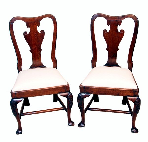 Antique Queen Anne Pair Of Walnut Side Chairs