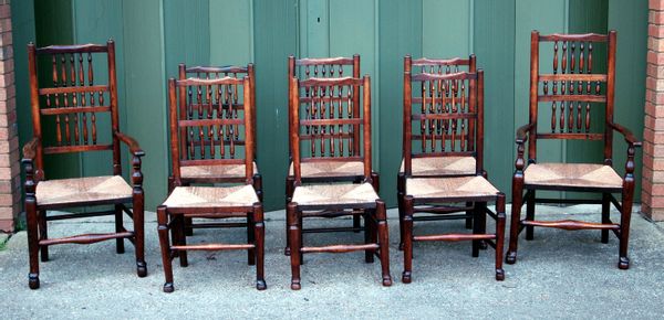 Antique Set Of Eight Early 19th Century Spindle Back Dining Chairs