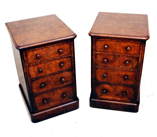 Antique Pair Walnut Bedside Pedestal Chests