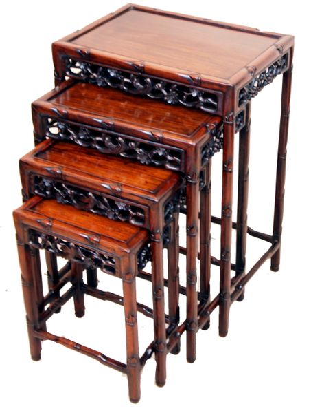 Antique Oriental Hardwood Nest Of Coffee Tables