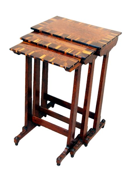 Antique Nest Of Three Oak & Coromandel Coffee Tables