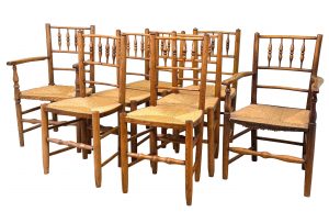 Set Of 8 Ash Farmhouse Kitchen Dining Chairs