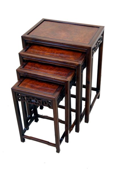 Antique Oriental Hardwood Nest Of Coffee Tables
