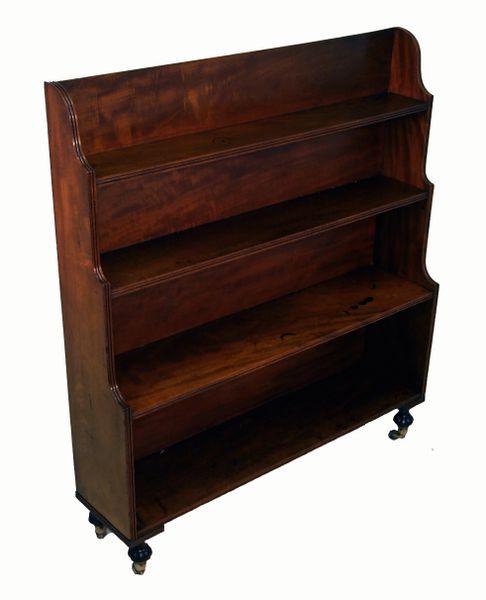 Antique Regency Mahogany Waterfall Open Bookcase