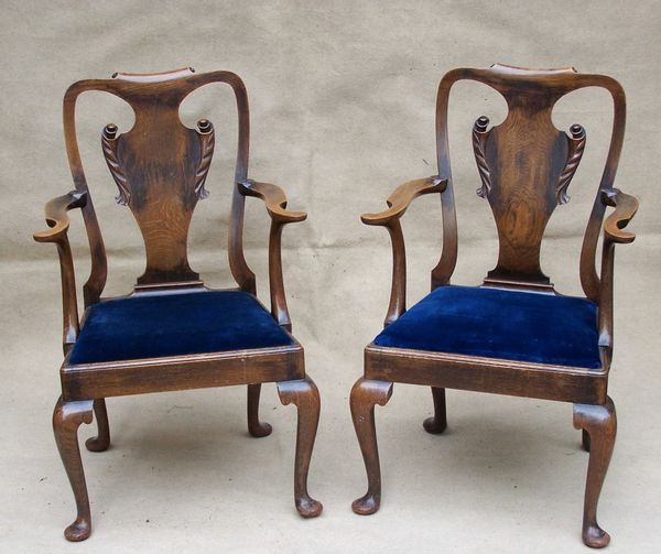 Pair Oak Armchairs