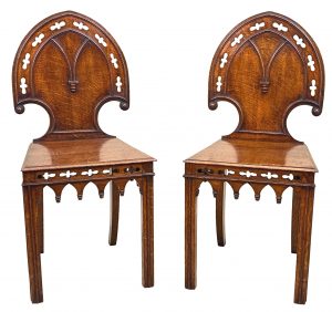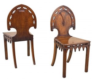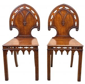 Pair Of 19th Century Oak Hall Chairs (England, circa 1860)