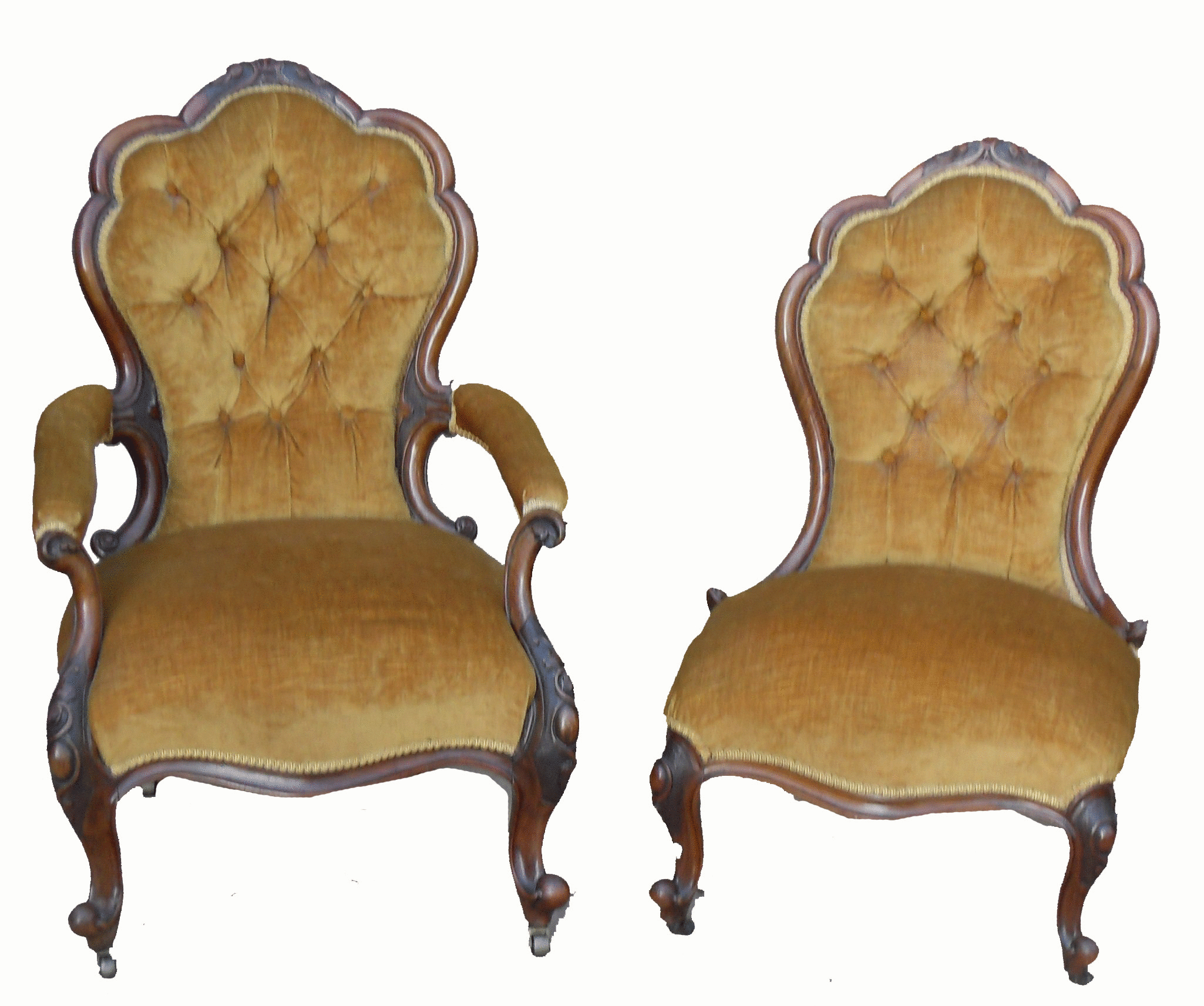 Pair Of Antique Walnut Armchairs (England, circa 1860)