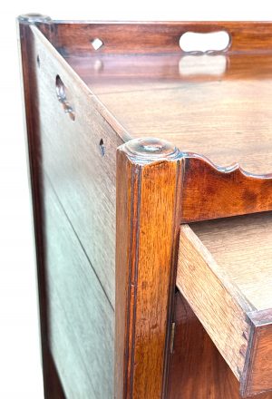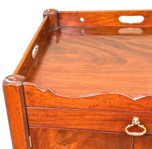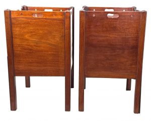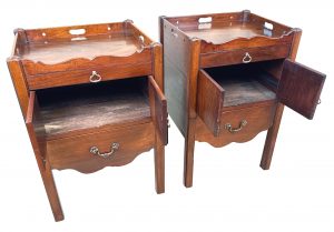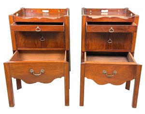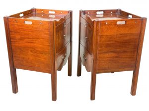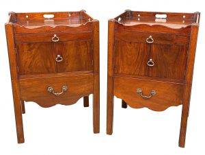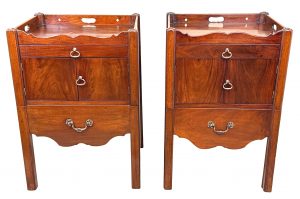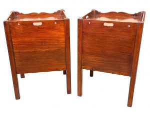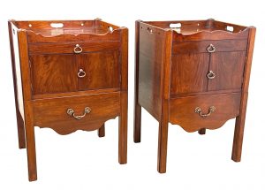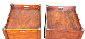 These are a really good example of the stereotypical Georgian bedside night table. At some point in their history they have been matched together into a pair, which is extremely common due to a relentless demand over many years for matching tables either side of a bed, in combination to the relative scarcity and therefore extremely high price of any true pairs which can occasionally be found on the market.