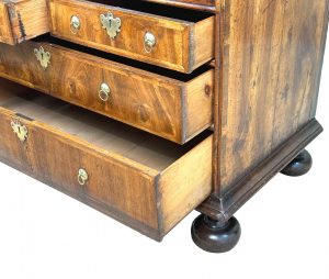 This is a great example of a Queen Anne Walnut Burea, constructed using very attractive and well figured walnut veneers which have been further enhanced using featherbanded decoration. It also retains a good rich colour and surface and has certainly never been stripped and repolished or anything like that over the years. It has very clearly been much loved and cherished throughout over 300 years of life and is certainly something which will continue to be cherished for many years to come.