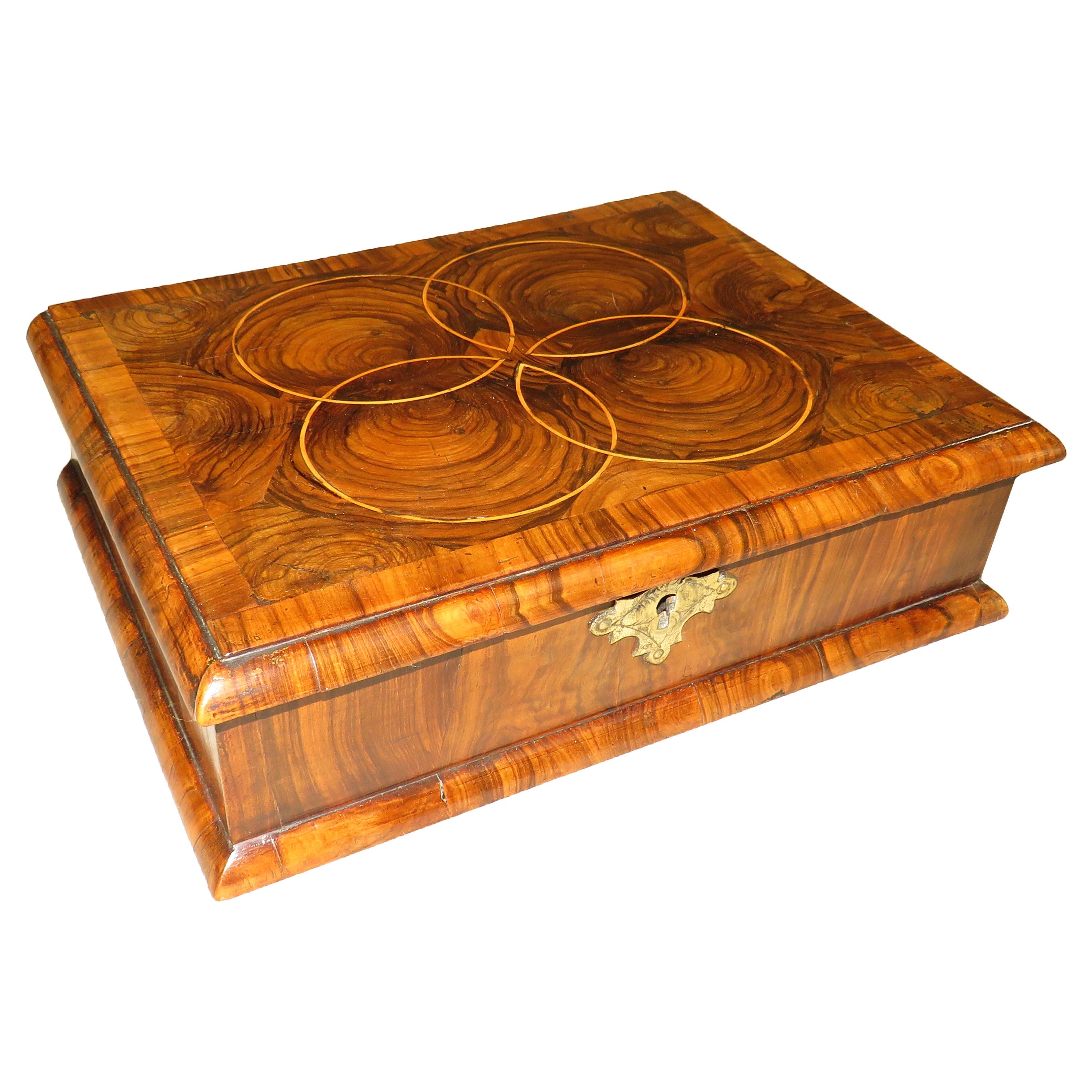 Queen Anne Laburnum Oyster Veneered Antique Glove Box (England, circa 1710)