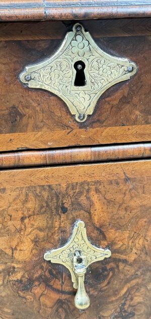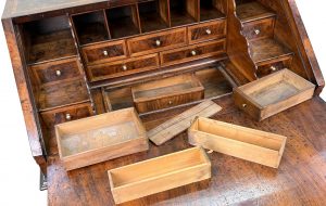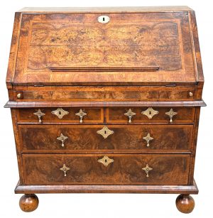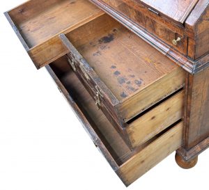 This is a quite wonderful example of a Queen Anne Walnut Bureau and it would be a quite challenging to easily find another one which is constructed from such highly figured veneers whilst retaining such an exceptional untouched, rich colour and patina. It has clearly been much loved and cherished throughout the 320 years or so of its life and is certainly something which will continue to be cherished for many years to come.