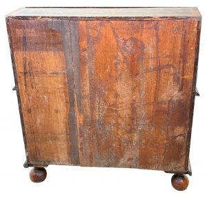 The brass handles and lock escutcheons are original which is another extremely rare feature and they certainly add to the overall charm of the piece with not just their originality, but also the charm of their design. It also sits on apparently original turned bun feet with no obvious signs that they are replacements whatsoever.