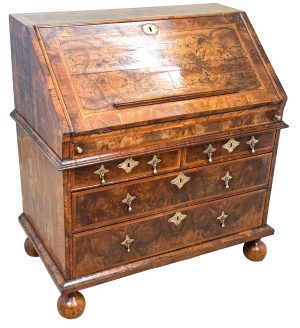 Queen Anne Period Early 18th Century Walnut Bureau (England, circa 1705)