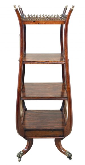 Rare Regency Rosewood & Brass Whatnot (England, circa 1835)