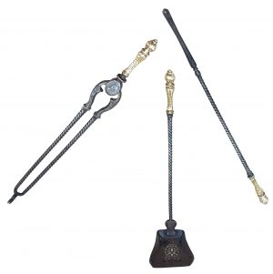 There are many varieties of antique fire tool sets and the quality varies greatly, as does the materials used for their construction and the decoration which is incorporated into their design. Some are very plain, some are overly elaborate and some are the perfect combination of quality, design and function.