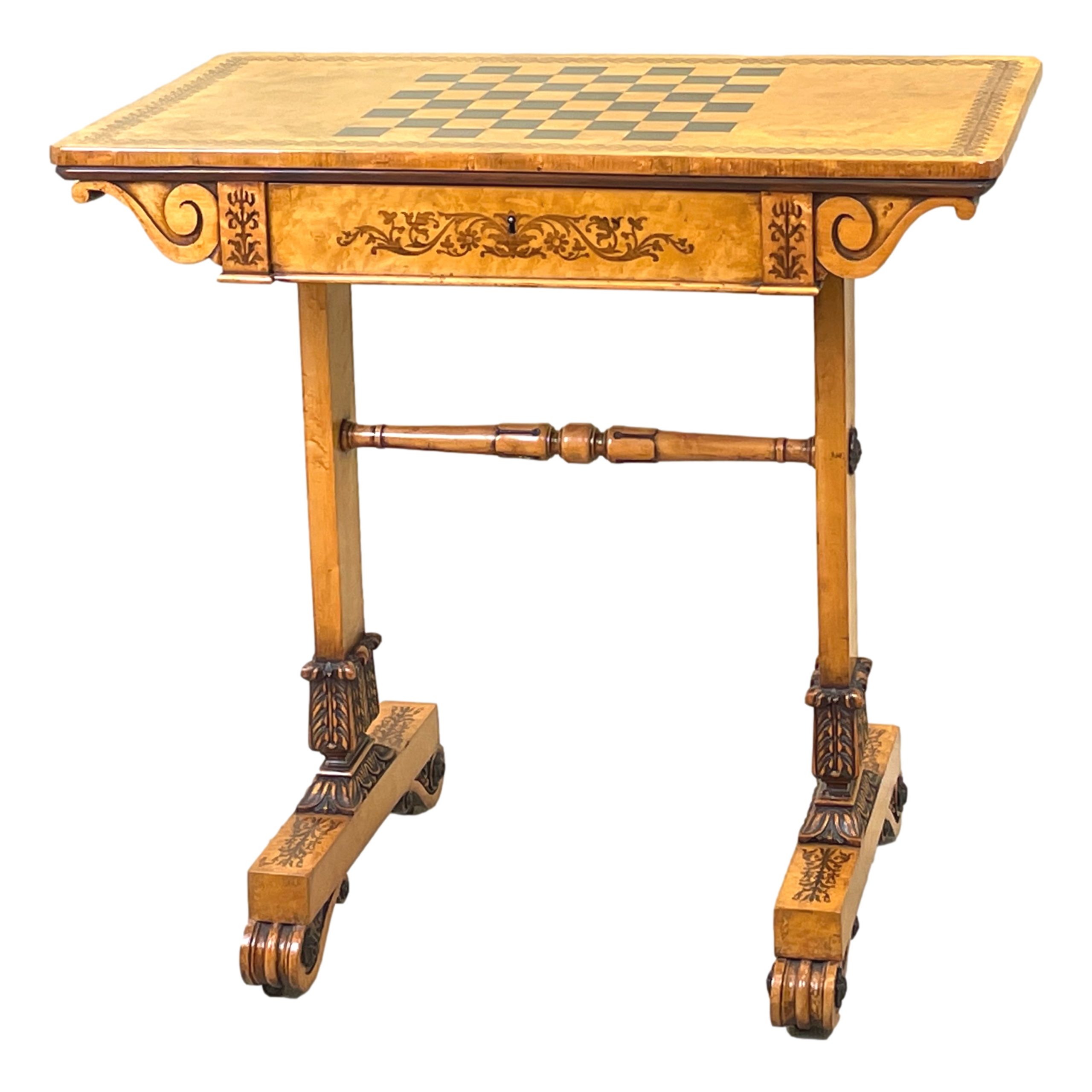 Regency Birds Eye Maple Wood Games Table (England, circa 1830)