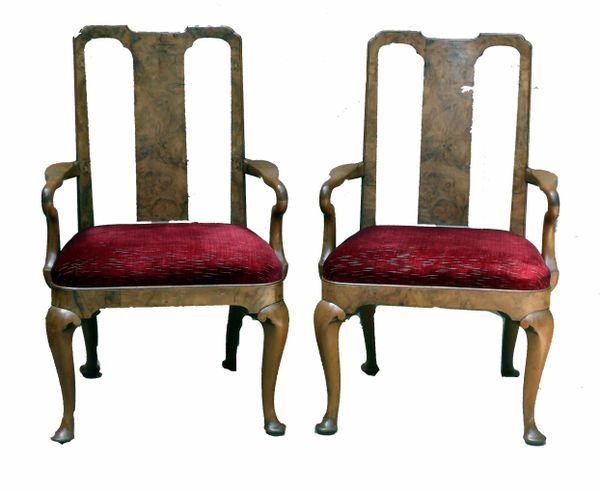 Style Burr Walnut Dining Chairs Having Cabriole Legs
