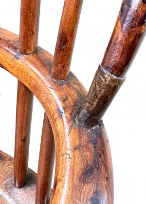 There is evidence of the first windsor chairs in the late 16th century, but they were very much popularised at the very end of the 18th century and early 19th century onwards. Always constructed from woods which were freely available in the UK, allowing for constant, plentiful supply they are most often found in ash and elm, sometimes fruitwood and least often in yew wood. Therefore the yew wood examples are nearly always the most sought after and best quality.